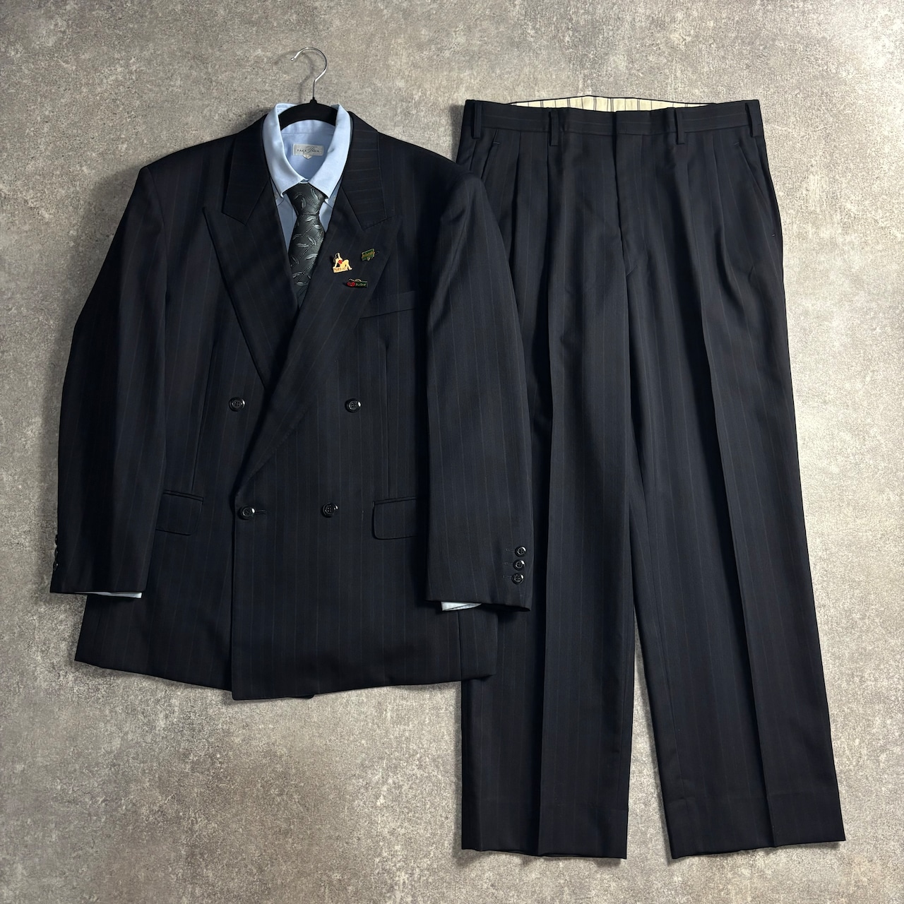 LOST特注【vintage】セットアップ ダブルスーツ ダークグレー 極上ウール