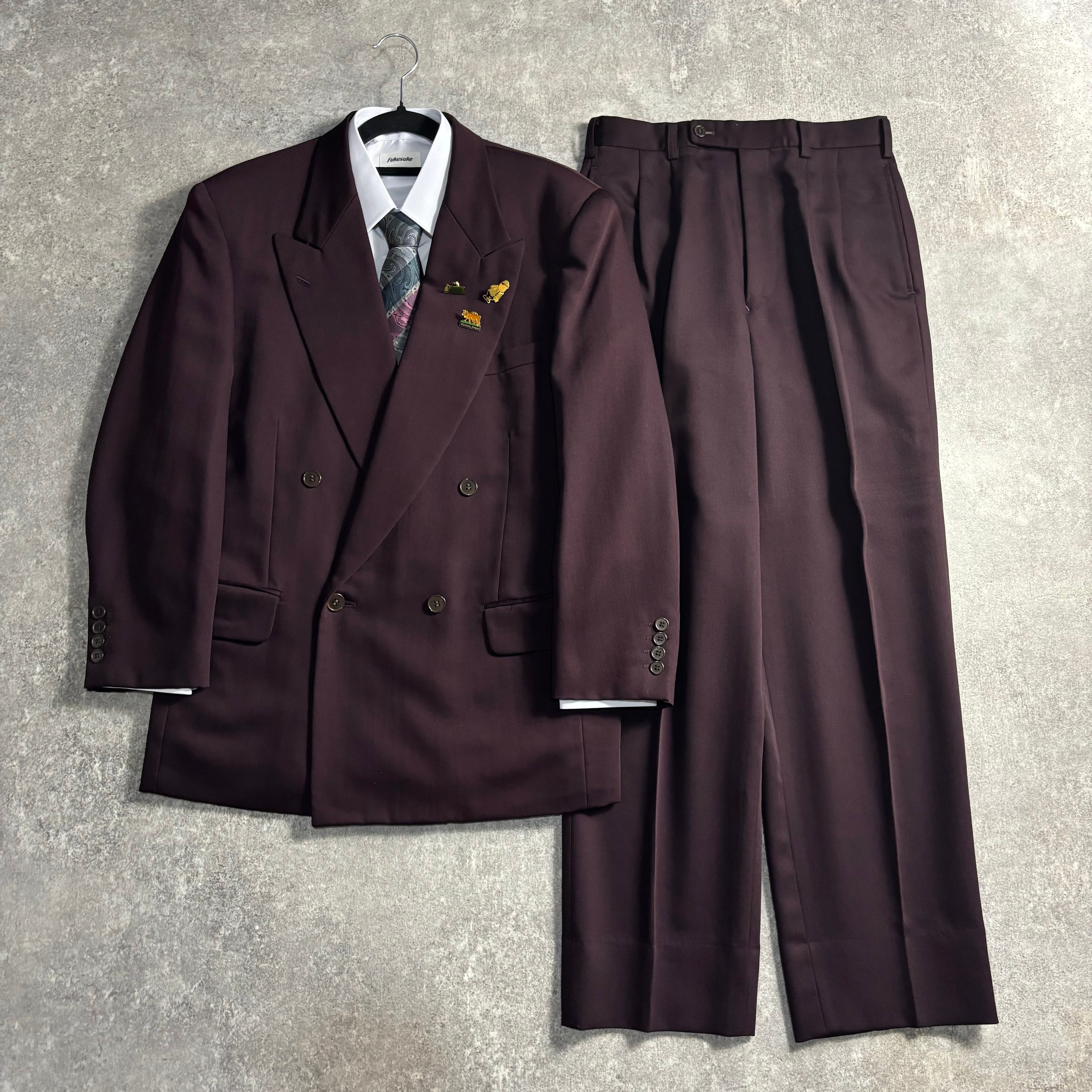 【vintage】セットアップ ダブルスーツ ワインパープル 極上ウール
