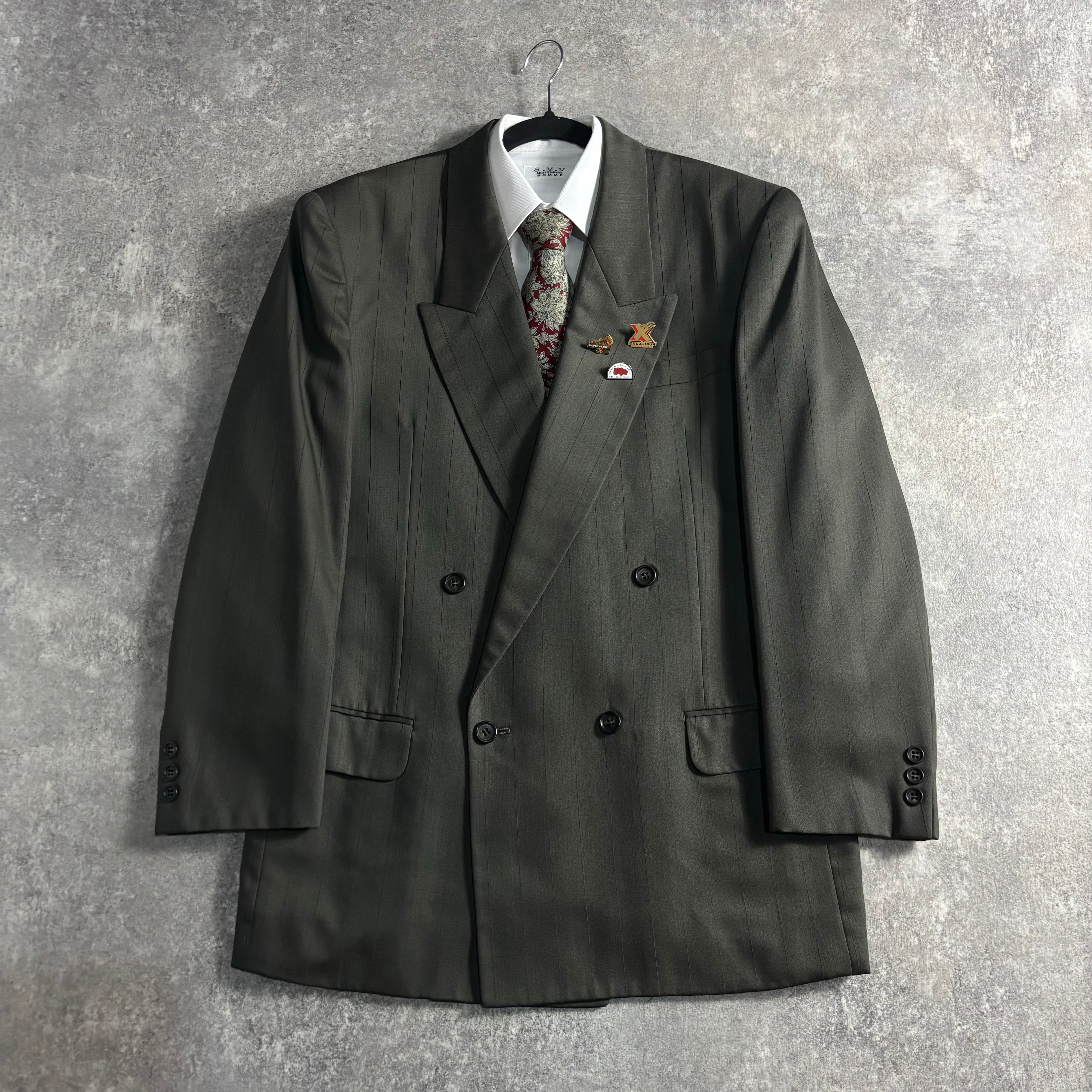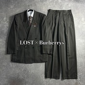 LOST特注 ダブルブレストスーツ クラシックグレー 極上ウール Burberrys'ネクタイ