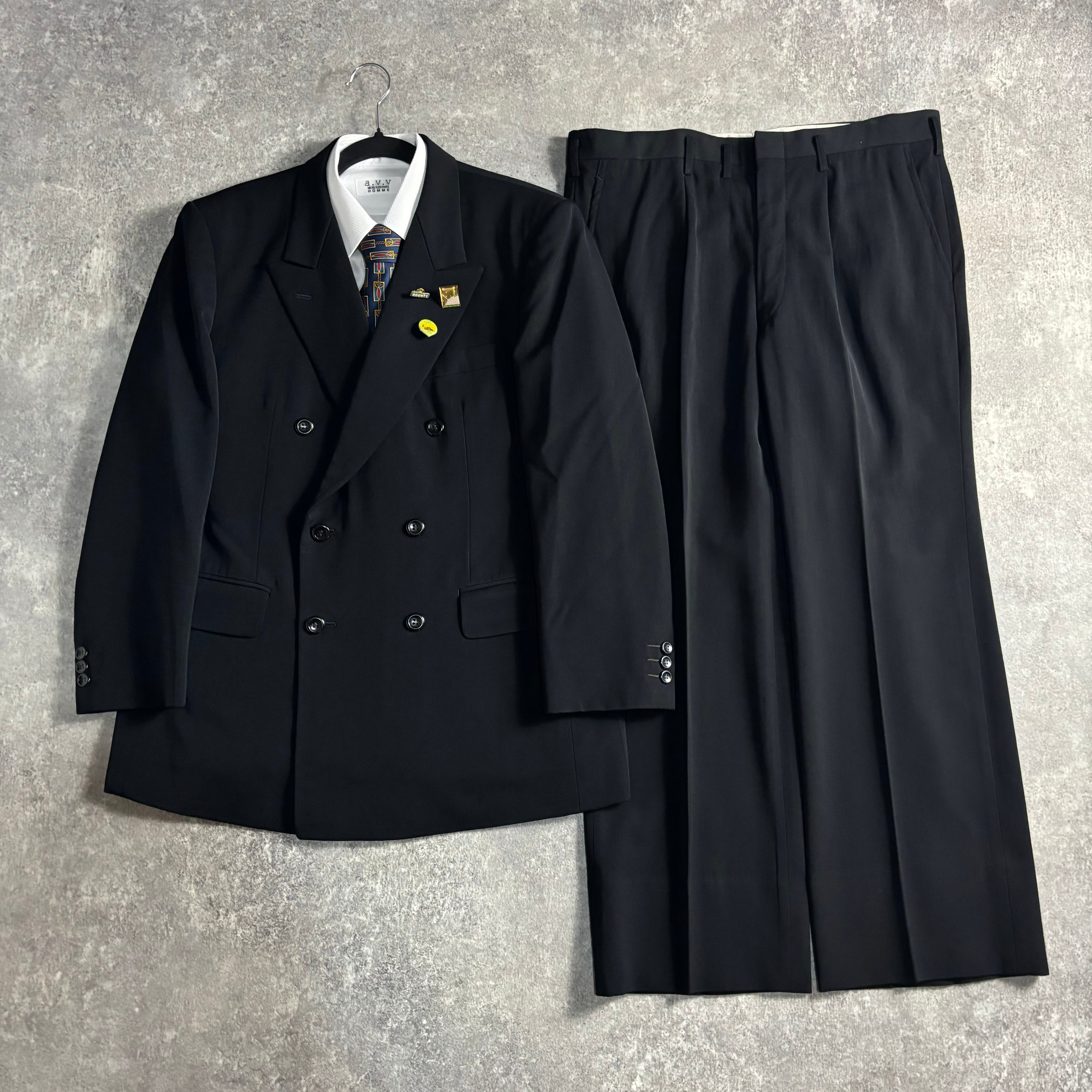 【vintage】セットアップ ダブルスーツ ブラック 極上ウール