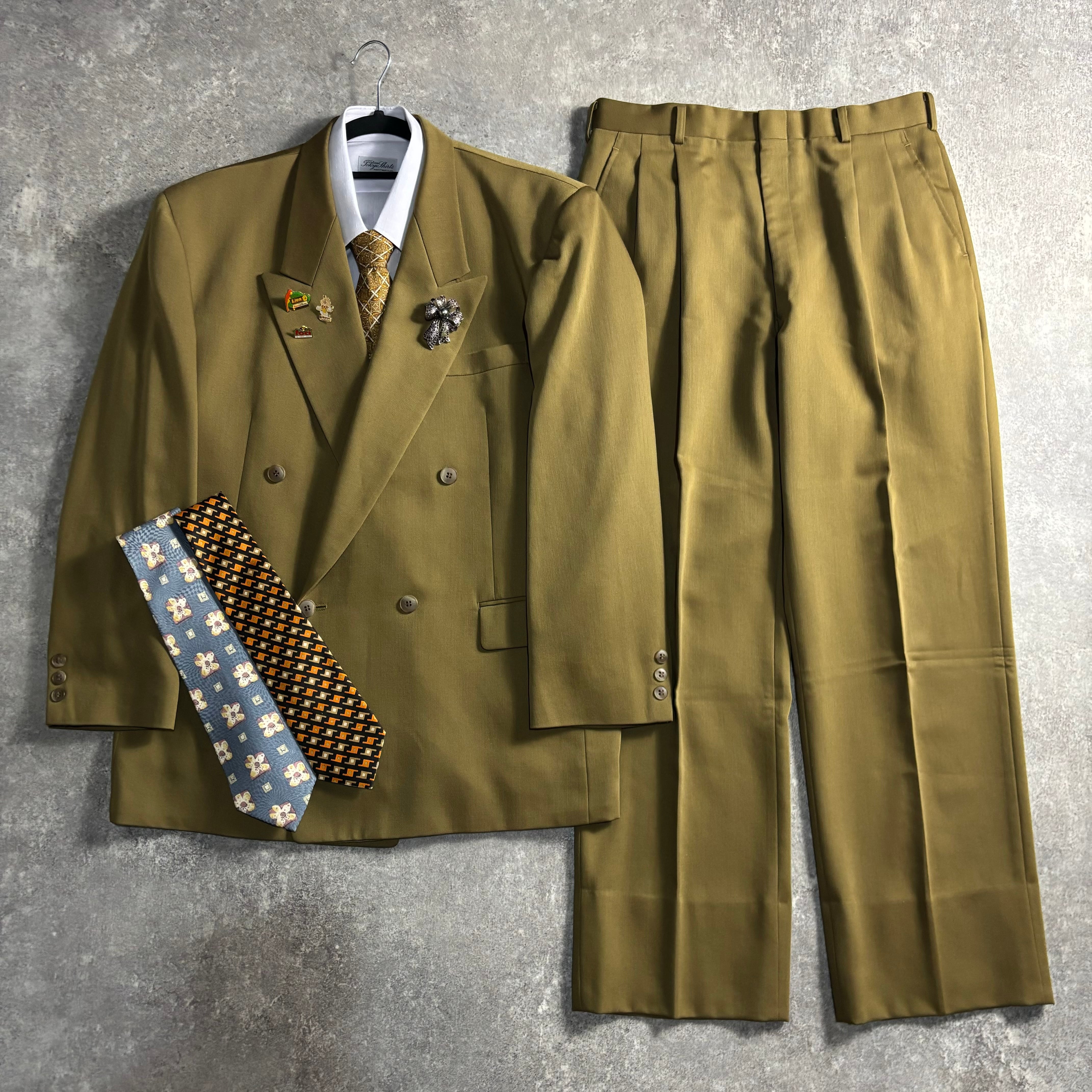 【vintage】セットアップ ダブルスーツ マスタードイエロー 極上ウール