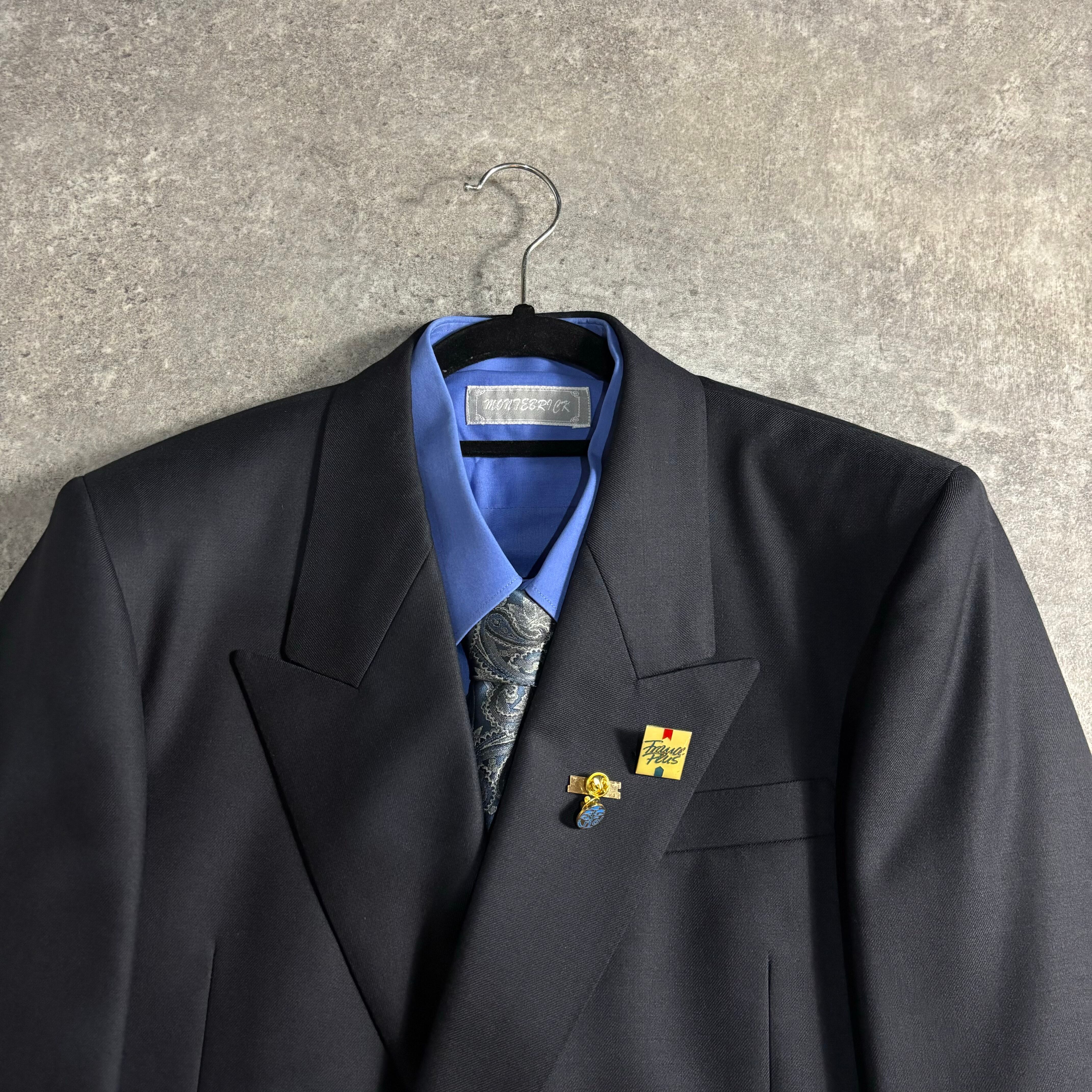 スーツ/ネクタイ/ヴィンテージピンズの3点フルセットでございます