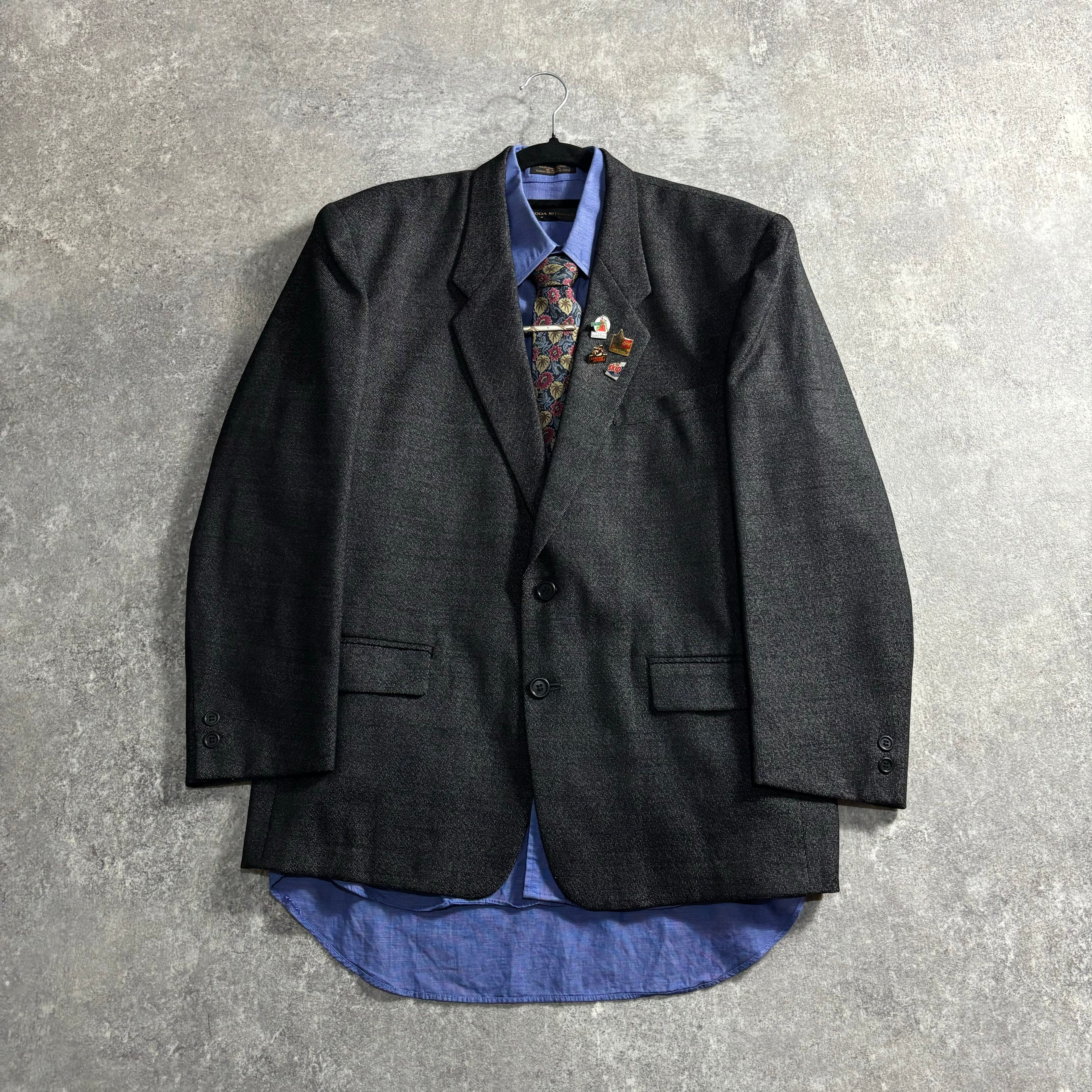 70s〜90sの年代ディテールに対してボックスシルエットかつオーバーなテーラリング。